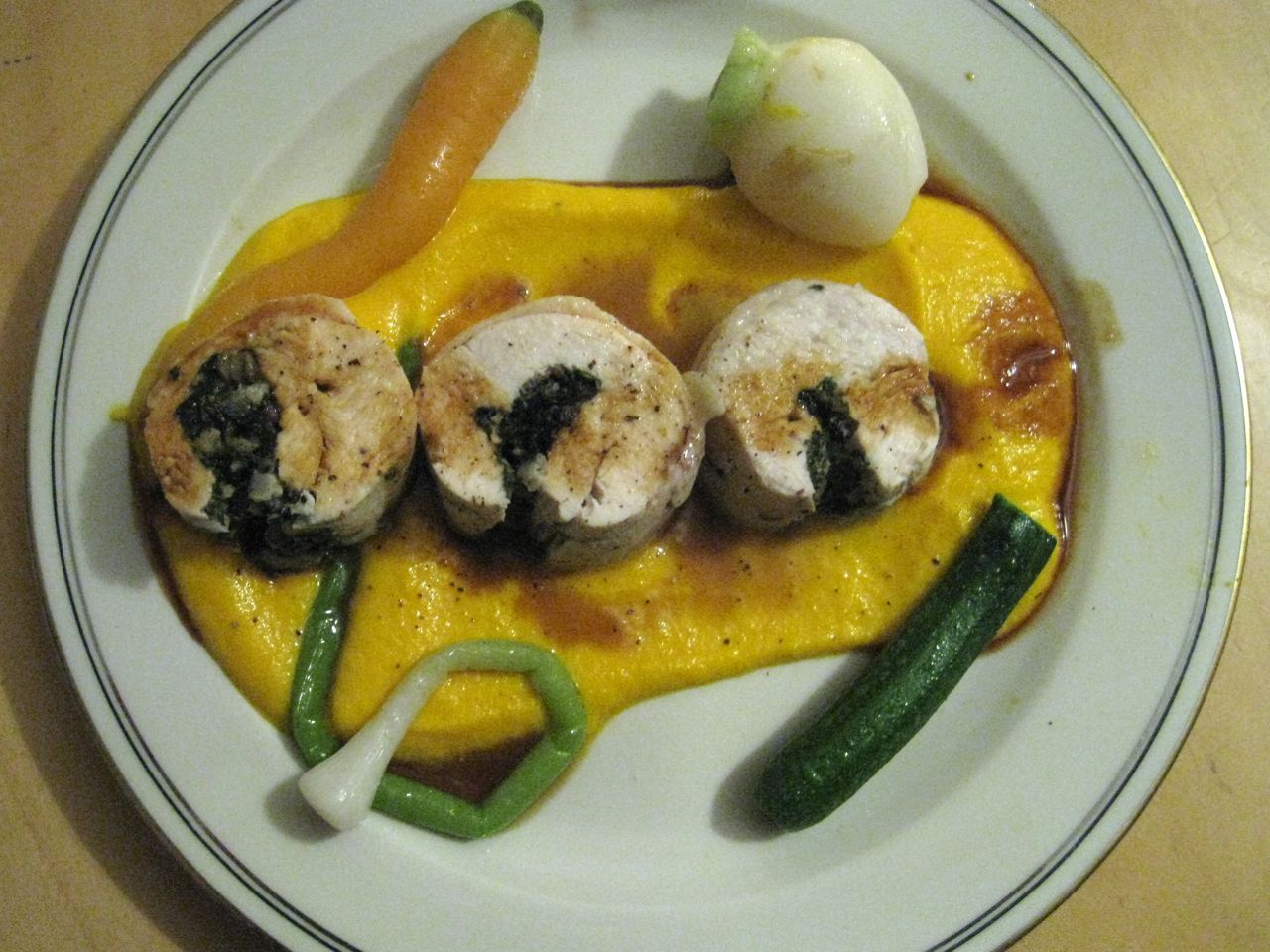 Faire des dessins avec une pointe de couteau. Dorer au jaune d'oeuf dilué. Décorer de perles d'or ou de paillettes alimentaires. Cuire environ 30 minutes au four préchauffé.